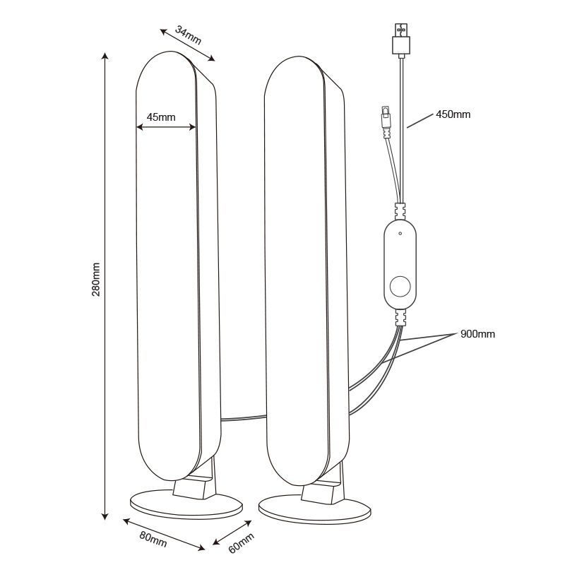 • 4,5 cm lang, 3,5 cm breed en 28 cm hoog
