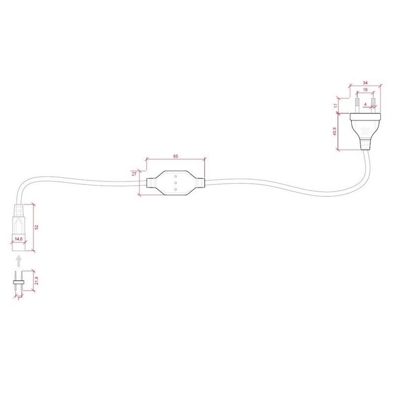 220V aansluitsnoer die past op al onze 220-240V LED strips. Dit aansluitsnoer is compleet met connector en 2 pins connector die je in de LED strip kunt bevestigen. Handig om mee te bestellen wanneer je bijvoorbeeld meerdere LED strips wilt halen uit 1 lange strip of als je een stuk strip hebt zonder aansluitsnoer.