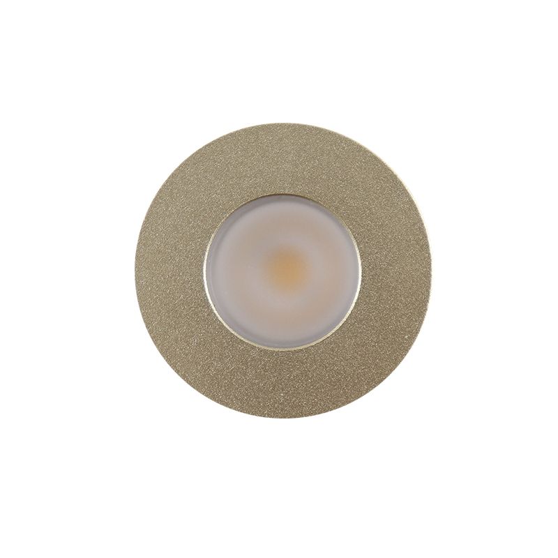 Dit is een set met 3 messing veranda inbouwspots Dico. Deze set wordt geleverd met bijna alle benodigde producten voor de installatie van de veranda verlichting. Zie het kopje inhoud voor de inhoud van de set. De messing verandaspot Dico is gemaakt van aluminium en heeft een moderne stijl. Iedere spot heeft een vermogen van 3 watt een de lichtkleur 2700k (extra warm wit).