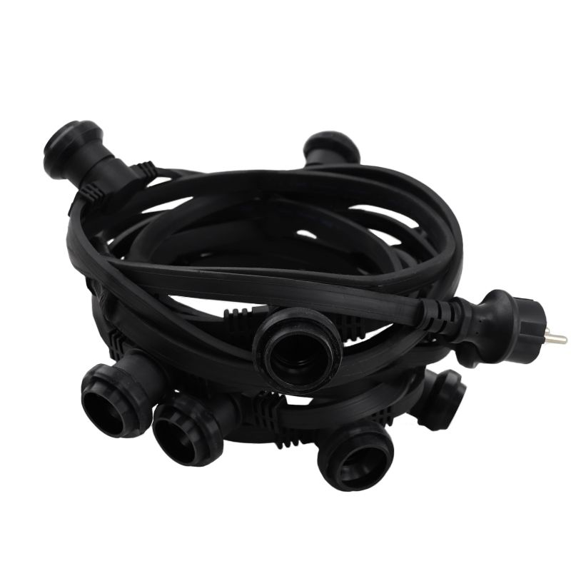 Dit is een rubberen prikkabel snoer met 2 fittingen per meter. De prikkabel is verkrijgbaar in diverse lengtes. Dit sterke snoer is geschikt voor buiten en binnen en is ideaal als terrasverlichting, sfeerverlichting of feestverlichting.