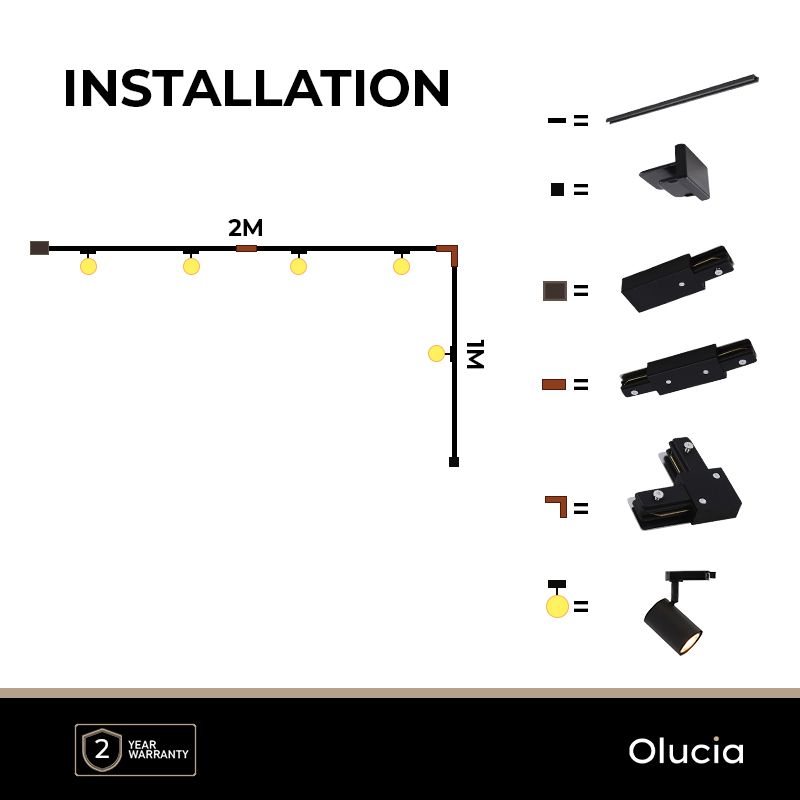 - 3M zwart 1-fase railverlichting systeem met hoekstuk + 5 Elena railspots