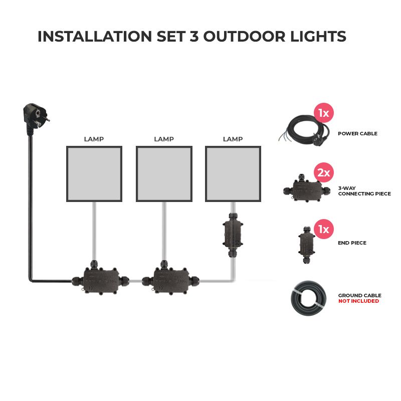 Snel en simpel je buitenlampen aansluiten? Met de aansluitset voor 3 buitenlampen heb je alles in huis om jouw buitenlamp gemakkelijk aan te sluiten. De aansluitset bevat de volgende onderdelen: