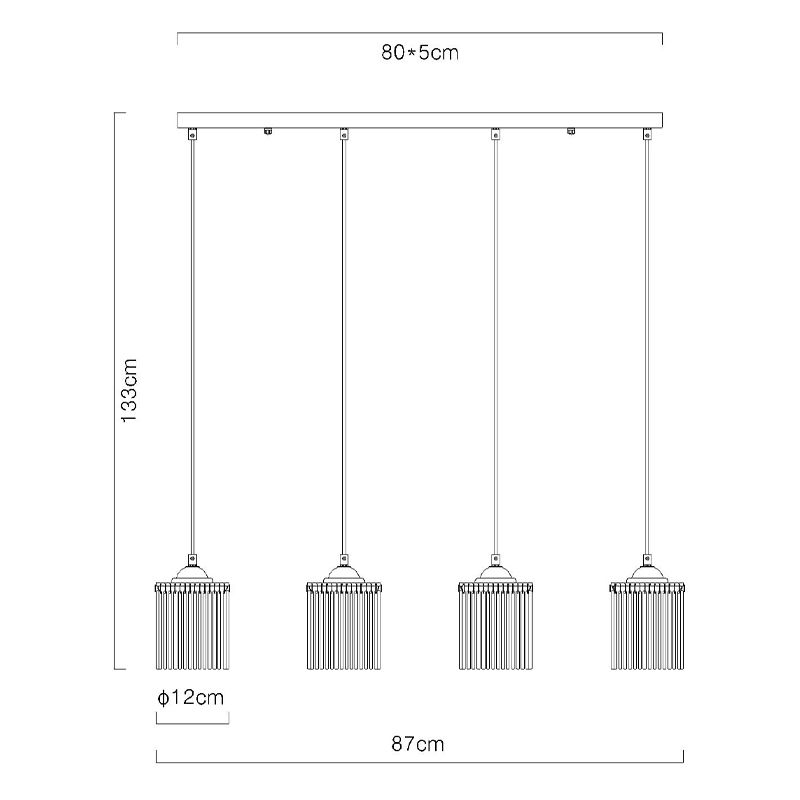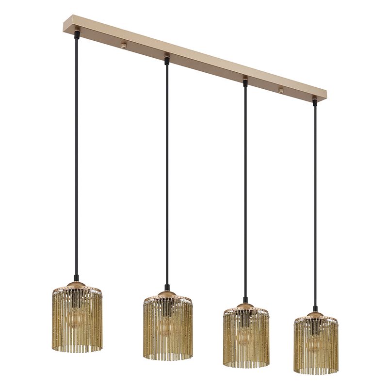 Product informatie Maximale wattage 40 Aansluitspanning 220-240V Aantal lampjes 4 Type fitting E14 Product informatie Incl. lampje Nee Breedte in cm 12 Hoogte in cm 133 Lengte in cm 87 Dimbaar Ja (niet meegeleverd) Garantie 2 jaar IP waarde IP20 (stofdicht) Kleur Goud, Amber Materiaal Metaal, Acryl Stijl Design Artikelnummer Q35135 - Home