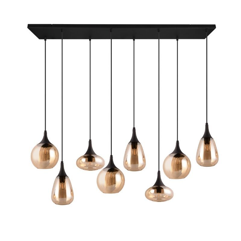 Product informatie Maximale wattage 40 Aansluitspanning 220-240V Aantal lampjes 8 Type fitting E14 Product informatie Incl. lampje Nee Breedte in cm 121 Gewicht in kg 6.885 Hoogte in cm 150 Lengte in cm 34.5 Dimbaar Ja (niet meegeleverd) Garantie 2 jaar IP waarde IP20 (stofdicht) Kleur Zwart, Amber Materiaal Metaal, Glas Stijl Design Artikelnummer Q52277