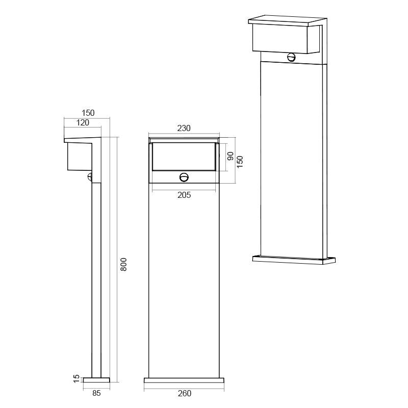 • 15 cm lang, 26 cm breed en 80 cm hoog
