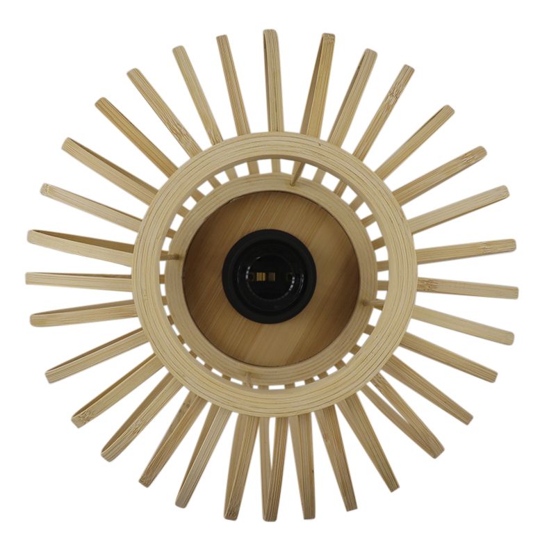 De bamboe plafonnière Lieve heeft de kleur bruin en een landelijk design. Deze landelijke plafonnière wordt zonder bijpassende lichtbron geleverd. De fitting van de lamp is een E27 fitting en het maximale vermogen van de lichtbron mag niet hoger zijn dan 60 watt.