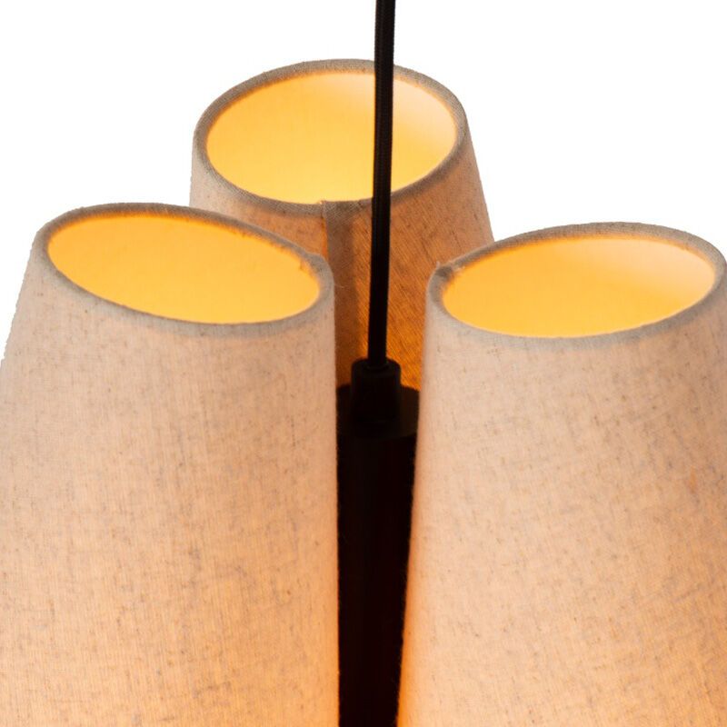 De beige hanglamp Gregory is gemaakt van stof. Deze beige hanglamp heeft 3 E27 fittingen en wordt exclusief 3 bijpassende lichtbronnen geleverd. In de lamp kunnen lichtbronnen met een maximaal vermogen van 60 watt.