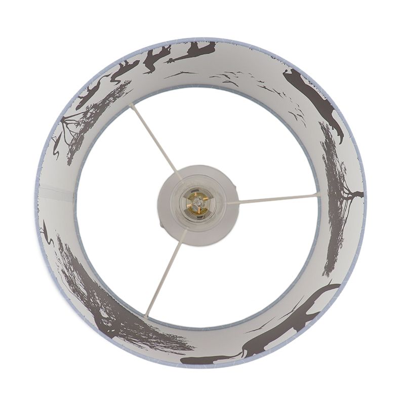 De Safari plafondlamp brengt de avontuurlijke sfeer van de savanne naar de kinderkamer. De lamp is gemaakt van blauwe stof en toont vrolijke safari-dieren zoals olifanten, neushoorns, struisvogels en giraffen. Een speelse en sfeervolle toevoeging aan elke kinderkamer!