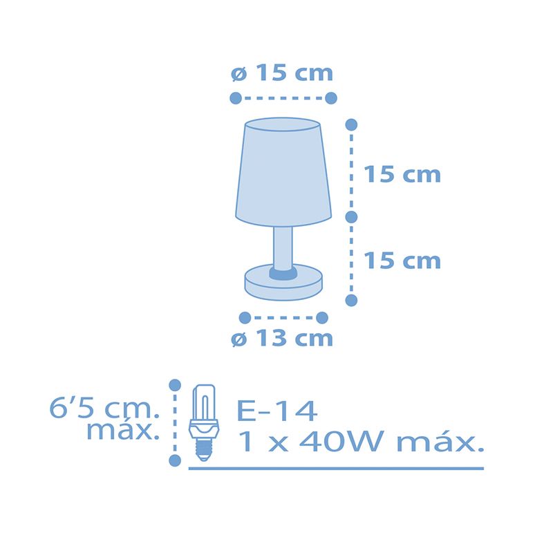 De blauwe kinder tafellamp Sterren is gemaakt van kunststof. De kinder tafellamp wordt geleverd exclusief lichtbron. In deze lamp moet een LED lichtbron met E14 (kleine) fitting. De lichtbron mag maximaal 25 watt aan vermogen hebben. De lamp heeft de IP waarde IP20 en is daardoor niet toe te passen op vochtige plekken. Klik hier voor meer informatie over de IP-Waardes.