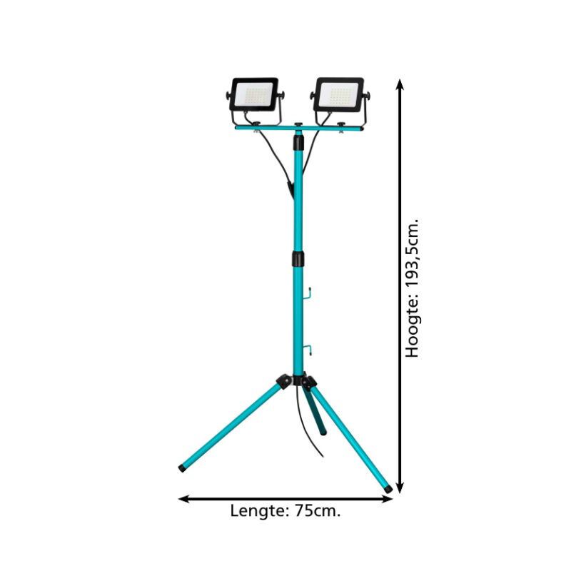 Special Price 149,- Adviesprijs: Regular Price 159,-3-6 werkdagen Blauwe werklamp aluminium, Angelos, 52W, 4000K LED, IP65, met schakelaar- B: 68,5 cm, H: 190,5 cm