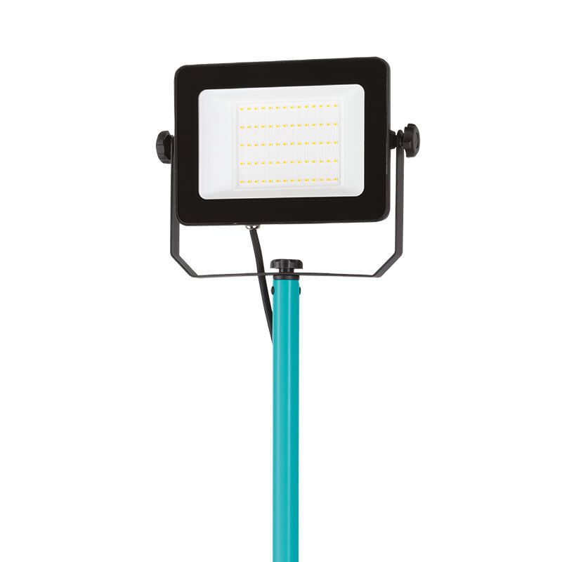Special Price 109,- Adviesprijs: Regular Price 119,-3-6 werkdagen Blauwe werklamp aluminium, Angelos, 100W, 4000K LED, IP65, met schakelaar- B: 68,5 cm, H: 201 cm