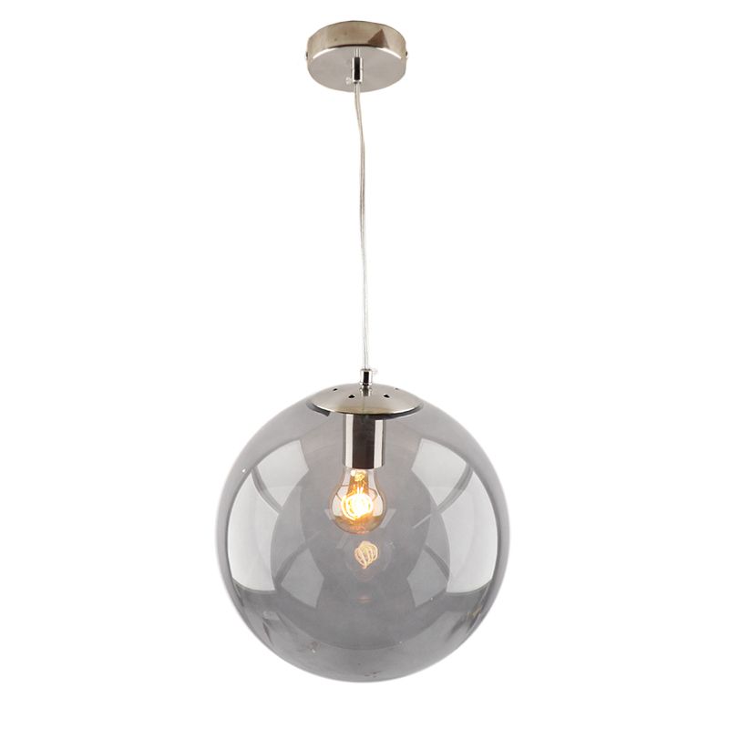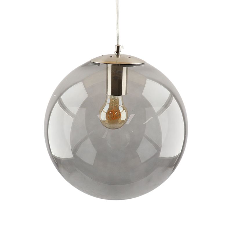 De bolle hanglamp Dolf met rookglas en nikkel ophangpendel is verkrijgbaar in meerdere formaten. De pendels zijn beschikbaar in de diameters 20 cm, 30 cm en 40 cm.