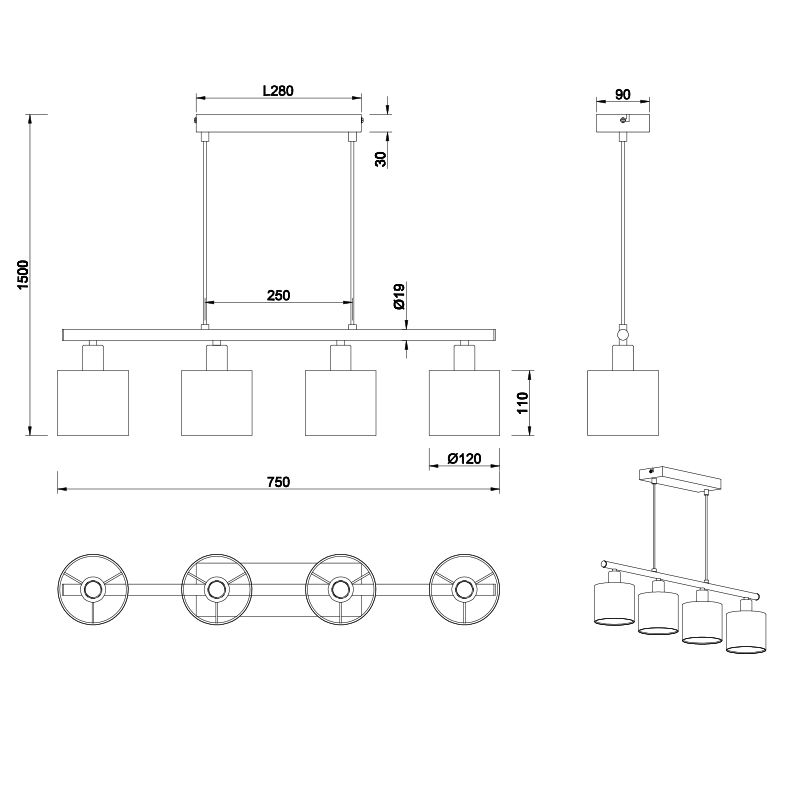• 4 x E14 fitting (excl. lichtbronnen)