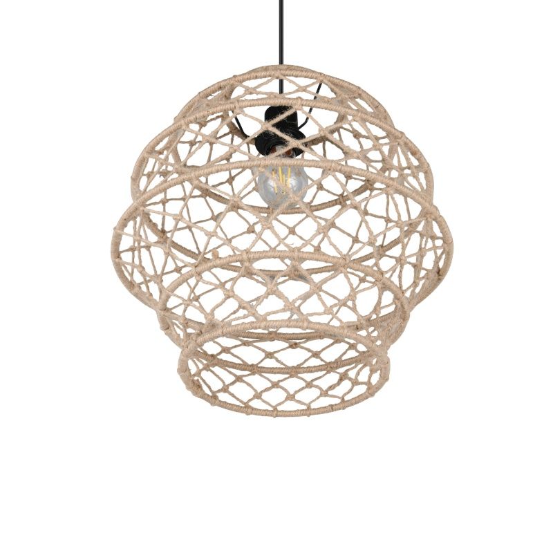Product informatie Maximale wattage 10 Aansluitspanning 220-240V Aantal lampjes 1 Type fitting E27 Product informatie Incl. lampje Nee Breedte in cm 38 Diameter in cm 38 Hoogte in cm 150 Dimbaar Ja (niet meegeleverd) Garantie 2 jaar IP waarde IP20 (stofdicht) Kleur Bruin, Zwart Materiaal Metaal, Touw Stijl Landelijk Artikelnummer Q10482