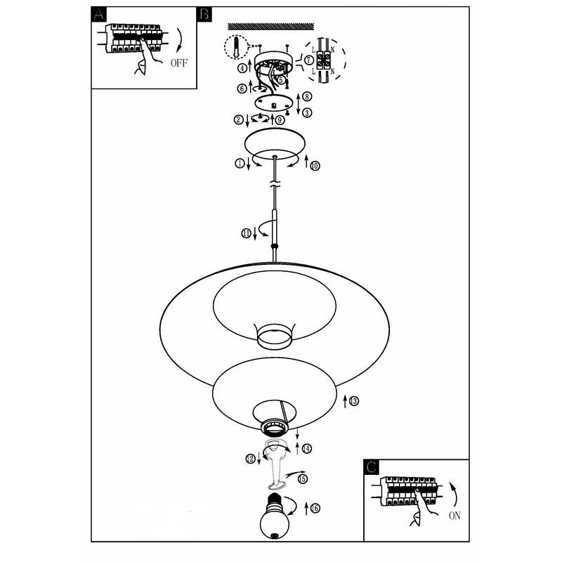 Je kan het snoer eenvoudig inkorten door het snoer door het plafondkapje te trekken. Bereken hiervoor eerst op welke hoogte je de hanglamp wil laten hangen.