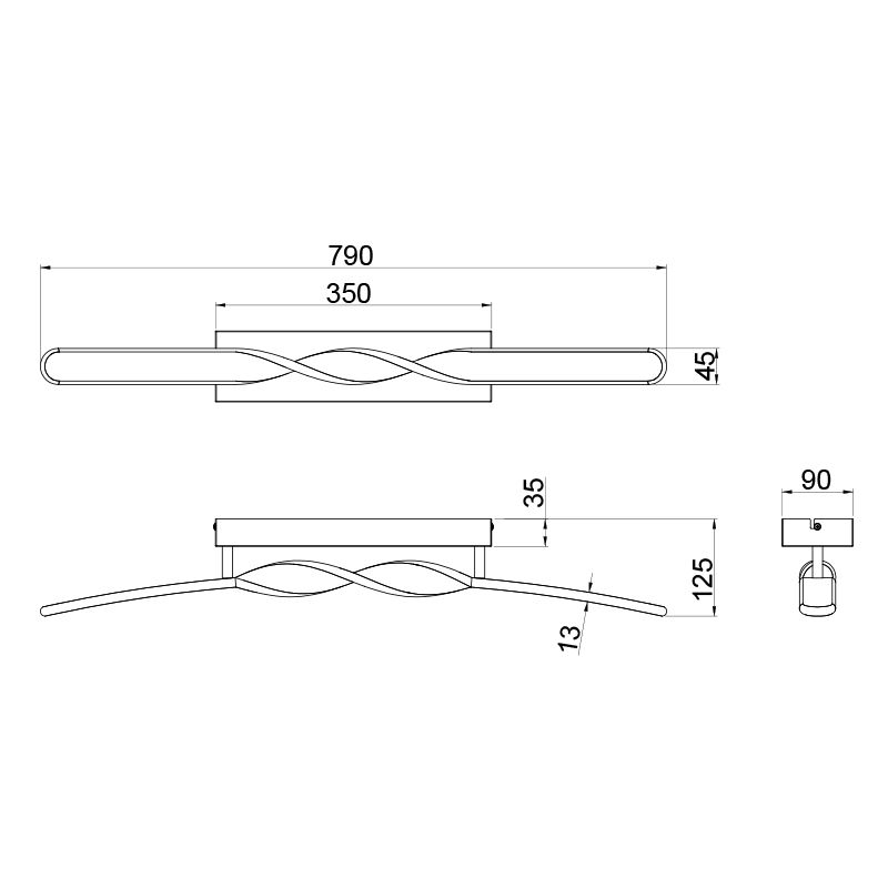 • 9 cm lang, 79 cm breed en 12 cm hoog