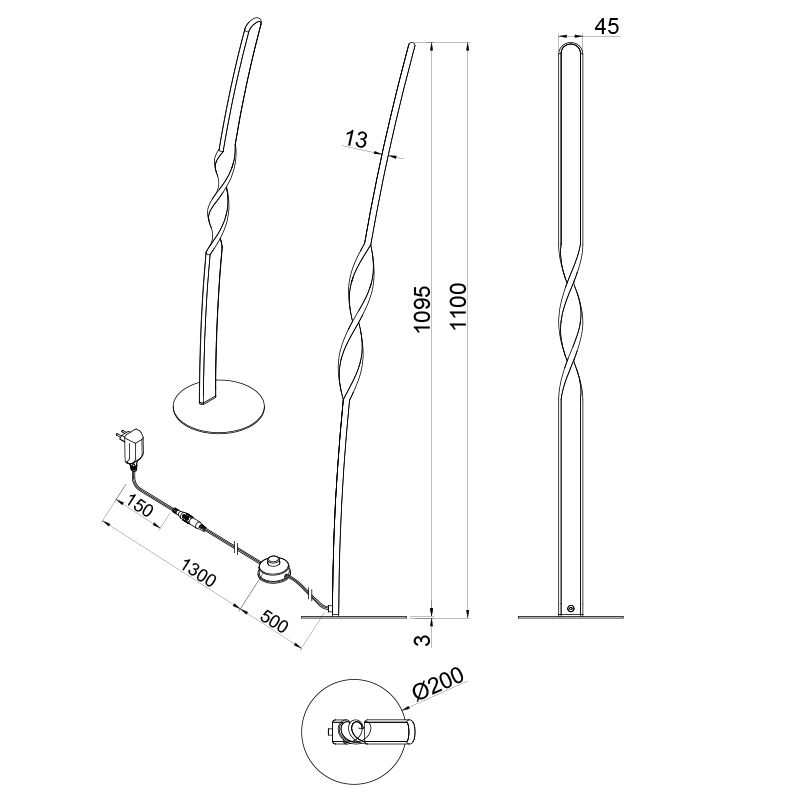 Deze design vloerlamp heeft een aan-uitschakelaar op het snoer. Met een snoerschakelaar zet je gemakkelijk de lamp aan en uit en hoef je niet de stekker uit het contact te halen.