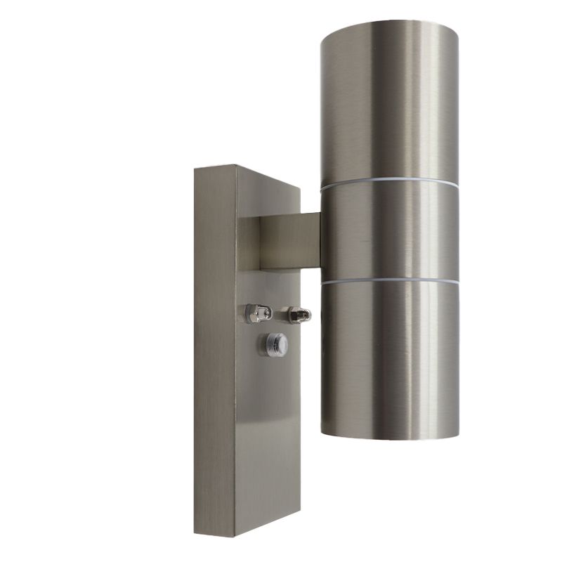 - Buiten up-down wandlamp met schemersensor Pedro, roestvrij staal (rvs)