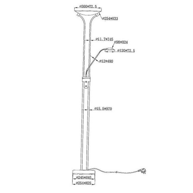 Product informatie Maximale wattage 20 Aansluitspanning 220-240V Energielabel E Aantal lampjes 1 Product informatie Aantal lumen 1600 Kleurweergave >80 Lichtkleur 3000K (warm wit) Powerfactor 0.5 Type fitting LED ingebouwd Type lichtbron bijgevoegd Geïntegreerd LED Verwachte aantal branduren 30000 Incl. lampje Ja, geïntegreerd Breedte in cm 50 Diameter in cm 25.4 Gewicht in kg 5.8 Hoogte in cm 180 In hoogte verstelbaar Nee Kabellengte 320 Lengte in cm 30 Maximale hoogte met lampenkap 180 Minimale hoogte met lampenkap 180 Dimbaar Ja (meegeleverd) Garantie 2 jaar IP waarde IP20 (stofdicht) Kleur Chroom Materiaal Metaal Met schakelaar Ja Met snoer en stekker Ja Stijl Modern Type schakelaar Aan/uit schakelaar op het product Artikelnummer Q17754 - Home