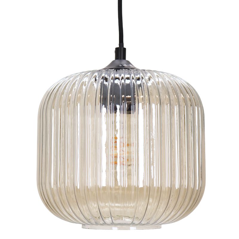 De design hanglamp Charlois is amber van kleur en gemaakt van glas. De amberkleurige hanglamp wordt geleverd exclusief bijpassende lichtbronnen. In deze lamp moeten 3 lichtbronnen met E27 fittingen. Het maximale wattage van de lichtbronnen mag niet hoger zijn dan 40 watt.