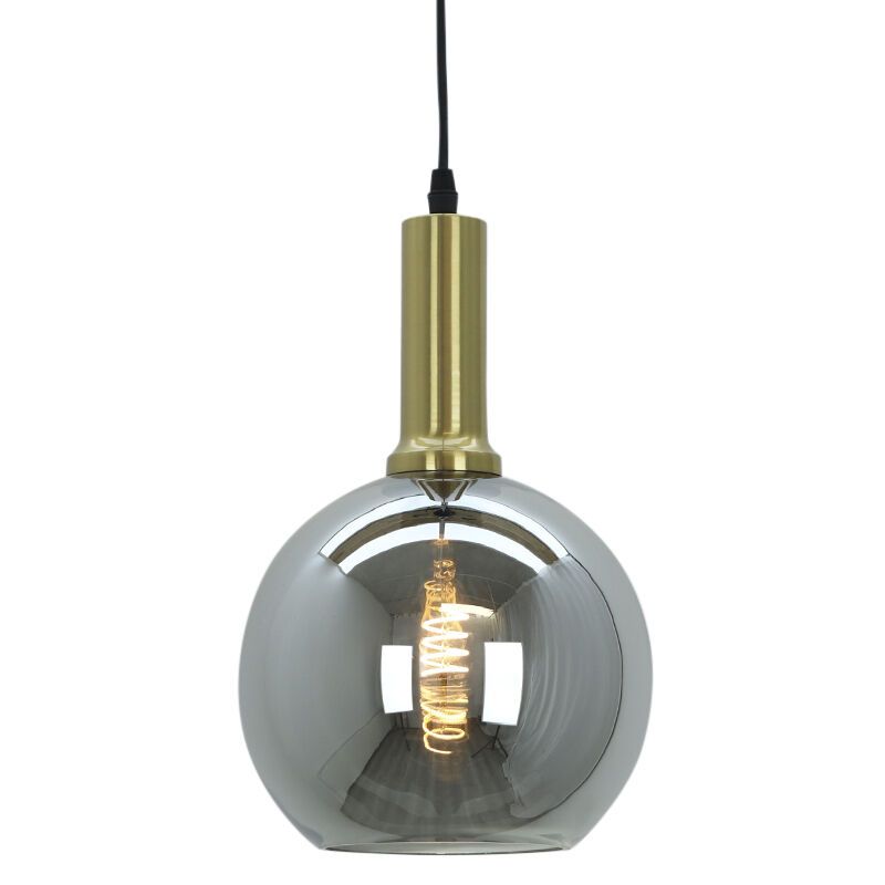 Special Price 129,- Adviesprijs: Regular Price 179,-Op voorraad Bol hanglamp Dolf, koper ophangpendel, rookglas, 30cm- D: 30 cm, H: 130 cm
