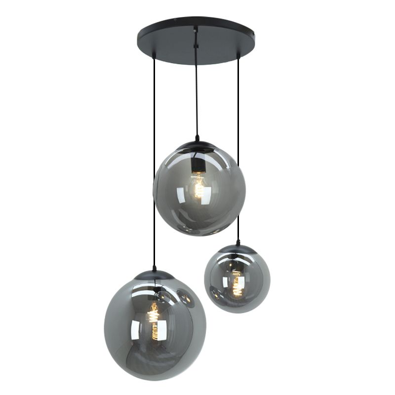 Ronde design hanglamp Lazaro met 3 rookglas kappen- D: 30 cm, H: 130 cm
