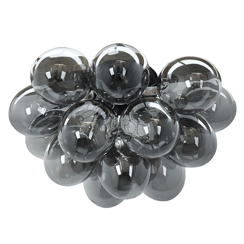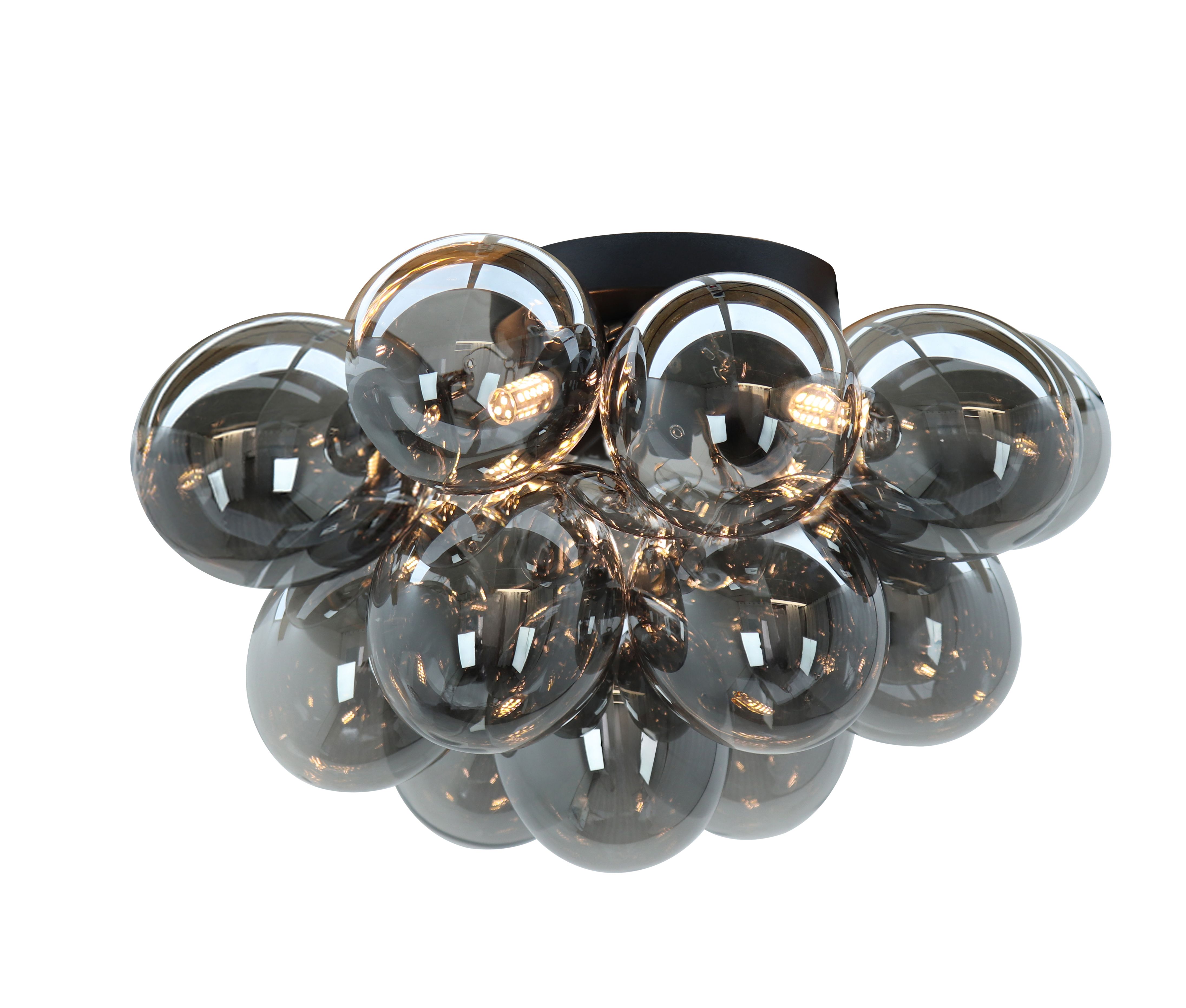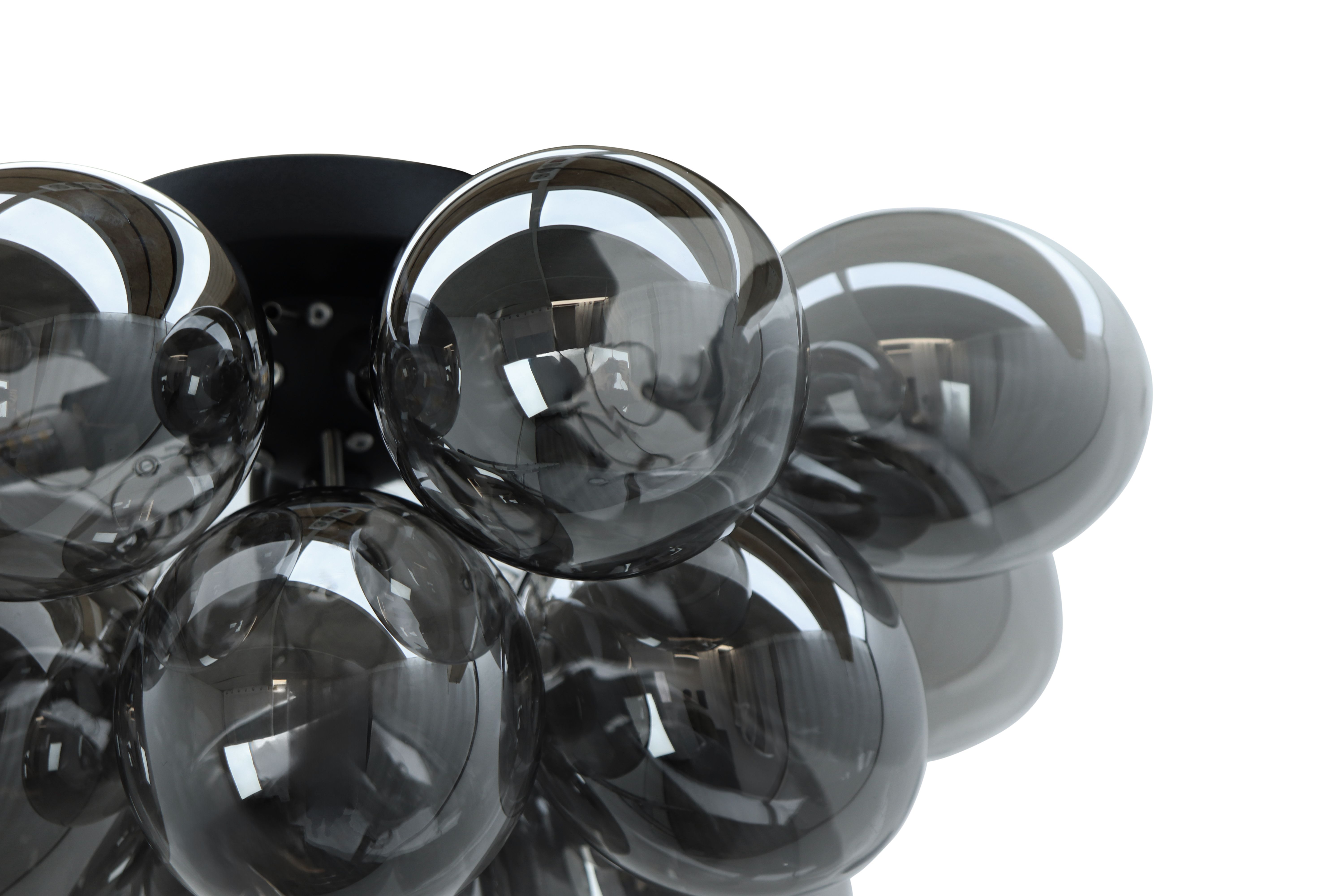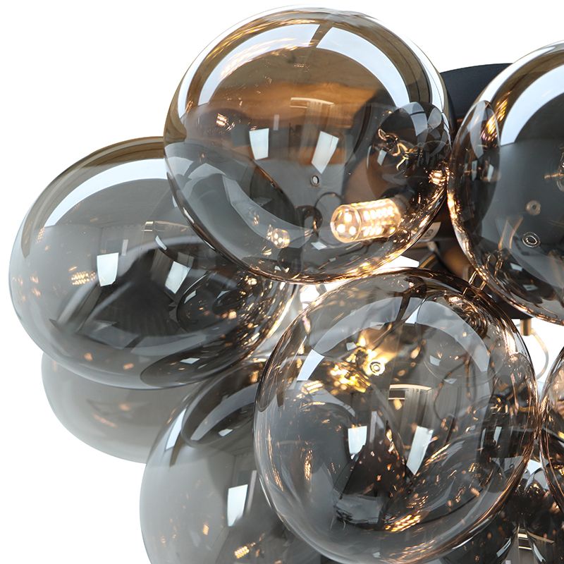 Special Price 149,- Adviesprijs: Regular Price 219,-Op voorraad Metalen plafondlamp zwart, Cyril, met 15 glazen bollen- D: 60 cm, H: 30 cm