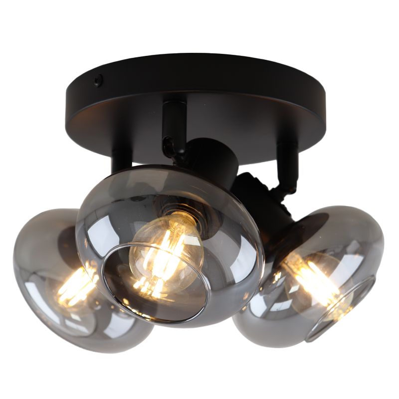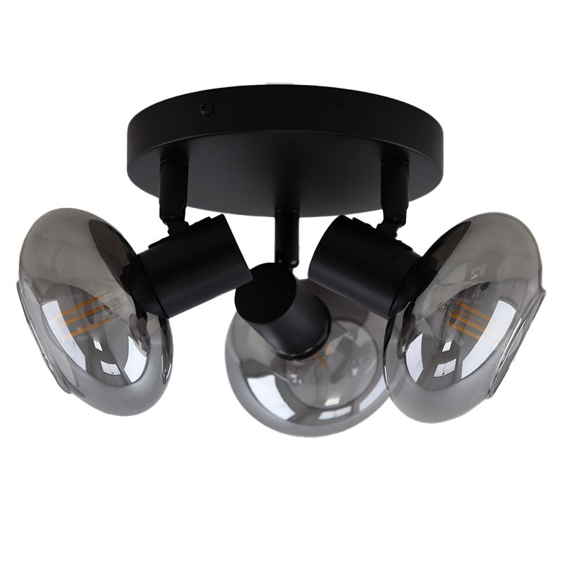 - Design plafondspot Skip, zwart, glas, 3L rond