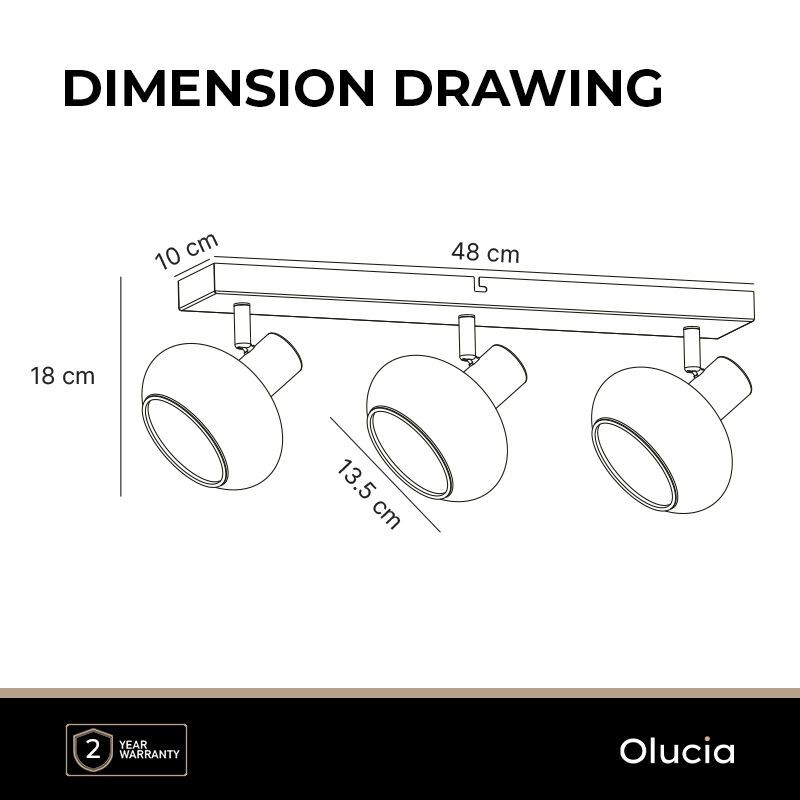 Product informatie Maximale wattage 40 Aansluitspanning 220-240V Aantal lampjes 3 Type fitting E14 Product informatie Incl. lampje Nee Breedte in cm 13.5 Breedte voet-/montageplaat in cm 10 Hoogte in cm 18 Hoogte voet-/montageplaat 2.5 Lengte in cm 54 Lengte voet-/montageplaat 48 Dimbaar Ja (niet meegeleverd) Garantie 2 jaar IP waarde IP20 (stofdicht) Kleur Messing, Wit Materiaal Metaal, Glas Stijl Design Artikelnummer Q79569 - Home