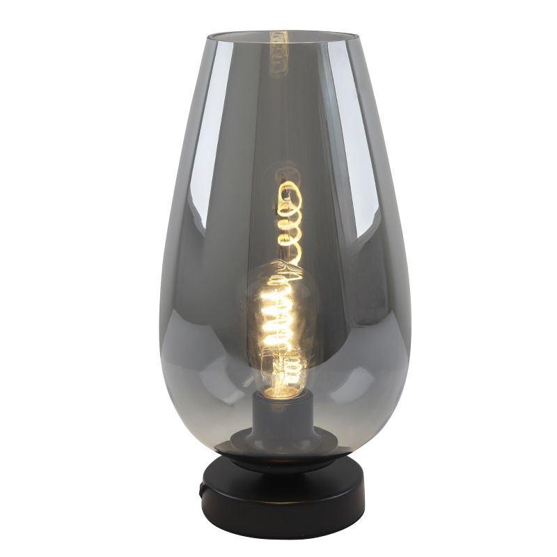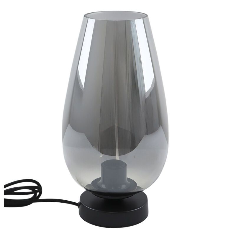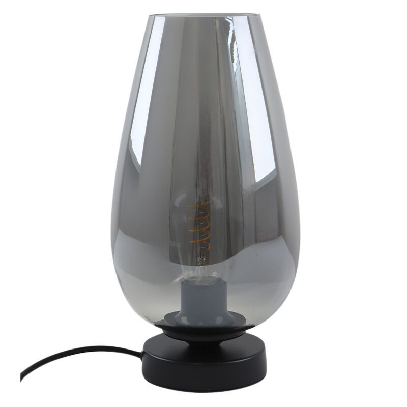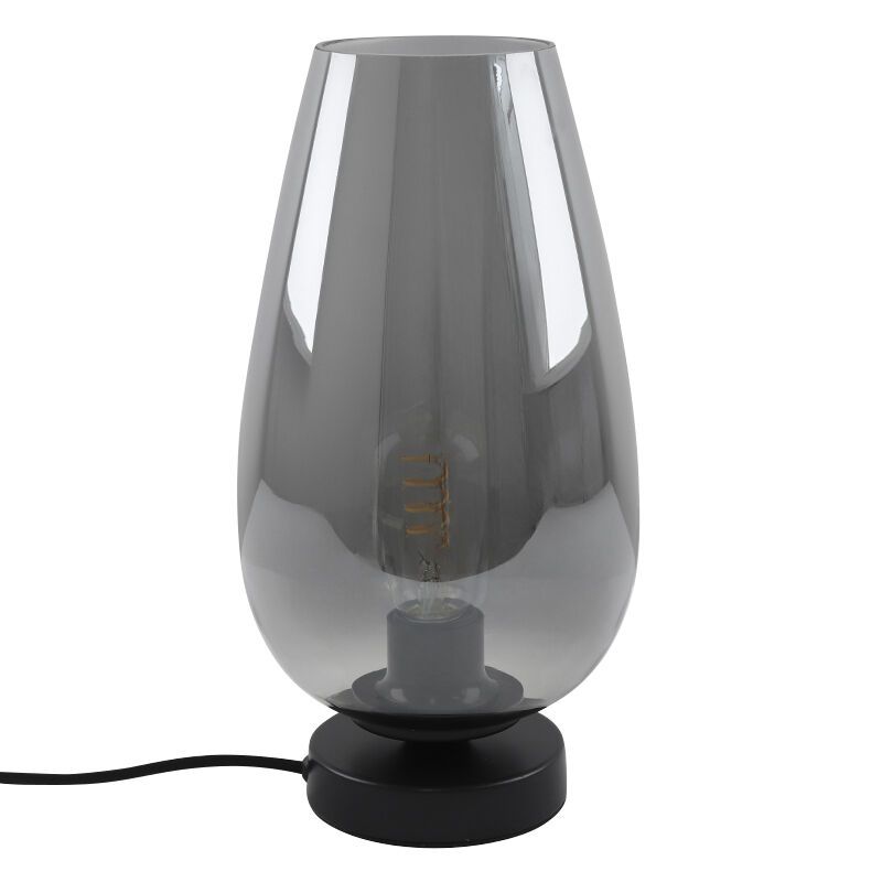 Special Price 89,99 Adviesprijs: Regular Price 129,-Op voorraad Grijze tafellamp rookglas, Danyal- D: 17,5 cm, H: 28,5 cm