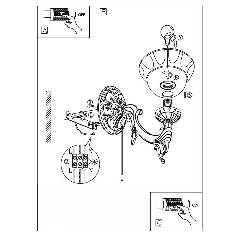 Deze wandlamp wordt zonder de benodigde lichtbron geleverd. De lamp is geschikt voor LED lampen en heeft een E14 (kleine) fitting. Het maximale wattage per lichtbron is 1X40W.