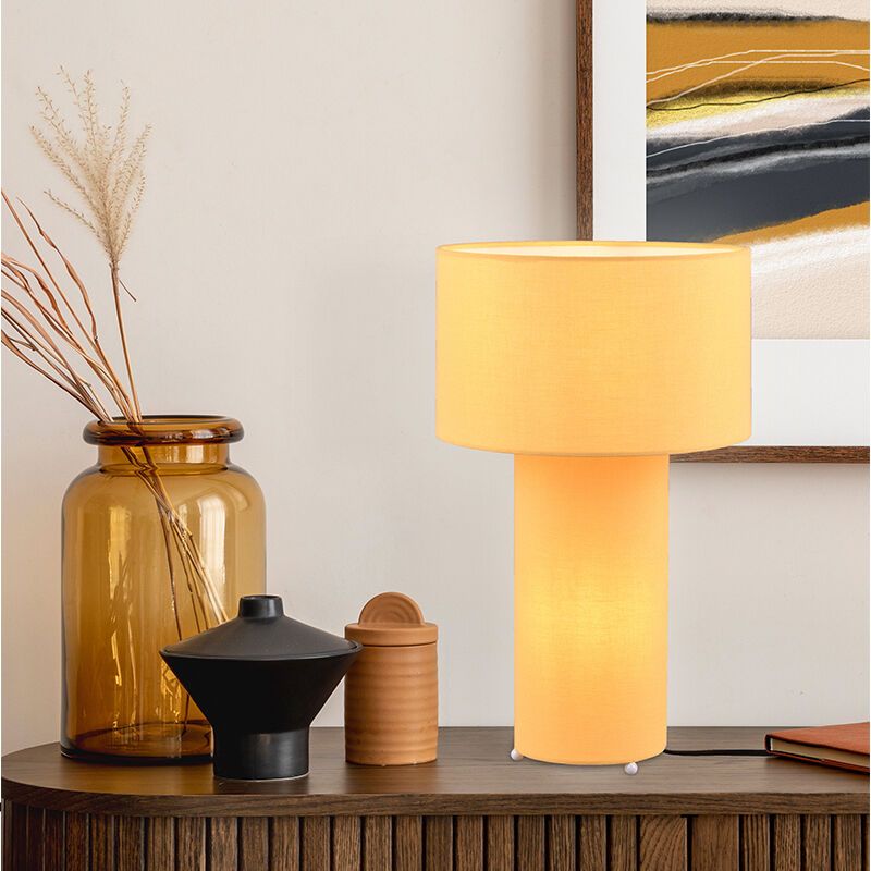 De gele tafellamp Denilson is gemaakt van stof. Deze gele tafellamp heeft 2 E27 fittingen en wordt exclusief 2 bijpassende lichtbronnen geleverd. In de lamp kunnen lichtbronnen met een maximaal vermogen van 10 watt.