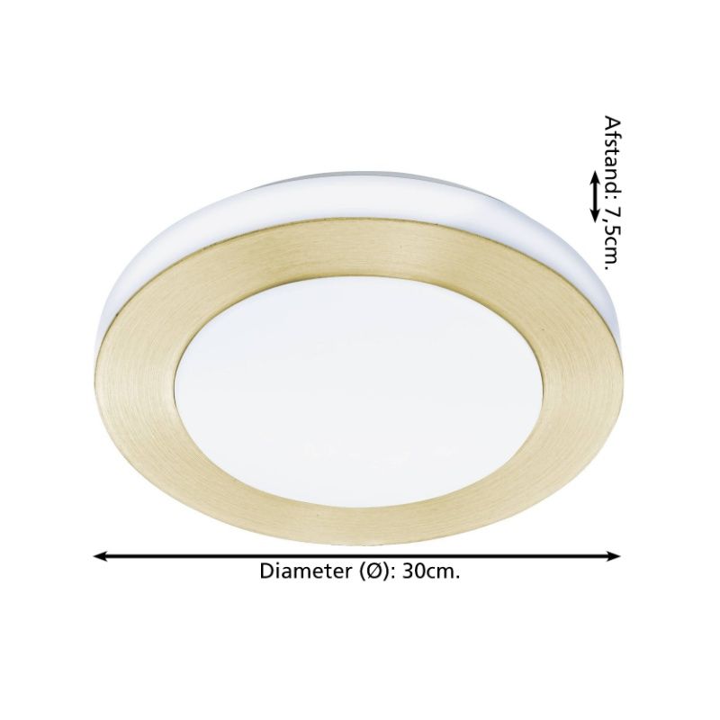 Product informatie Maximale wattage 3.6 Aansluitspanning 220-240V Aantal lampjes 3 Aantal lumen 1110 Product informatie Lichtkleur 3000K (warm wit) Type fitting LED ingebouwd Type lichtbron bijgevoegd Geïntegreerd LED Verwachte aantal branduren 15000 Incl. lampje Ja, geïntegreerd Breedte in cm 30 Diameter in cm 30 Gewicht in kg 0.62 Hoogte in cm 8 Dimbaar Nee Garantie 2 jaar IP waarde IP44 (stof- en waterbestendig) Kleur Goud, Wit Materiaal Kunststof, Staal Ruimte Badkamer Stijl Basis Artikelnummer Q33810 - Home