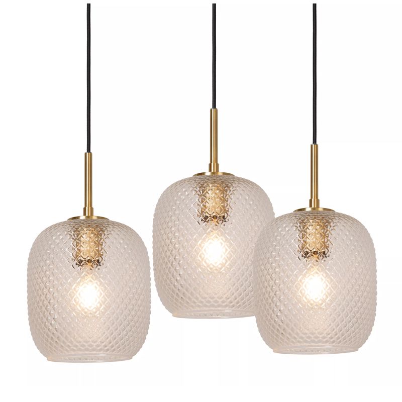 De gouden hanglamp Alicent heeft de stijl retro en is gemaakt van glas. Deze retro hanglamp heeft 3 E27 fittingen en wordt exclusief 3 bijpassende lichtbronnen geleverd. In de lamp kunnen lichtbronnen met een maximaal vermogen van 40 watt.