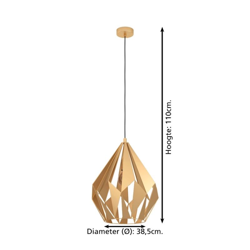 Product informatie Maximale wattage 60 Aansluitspanning 220-240V Aantal lampjes 1 Type fitting E27 Product informatie Incl. lampje Nee Breedte in cm 38.5 Diameter in cm 38.5 Gewicht in kg 2.141 Hoogte in cm 110 Dimbaar Ja (niet meegeleverd) Garantie 2 jaar IP waarde IP20 (stofdicht) Kleur Goud Materiaal Aluminium Stijl Industrieel Artikelnummer Q33773