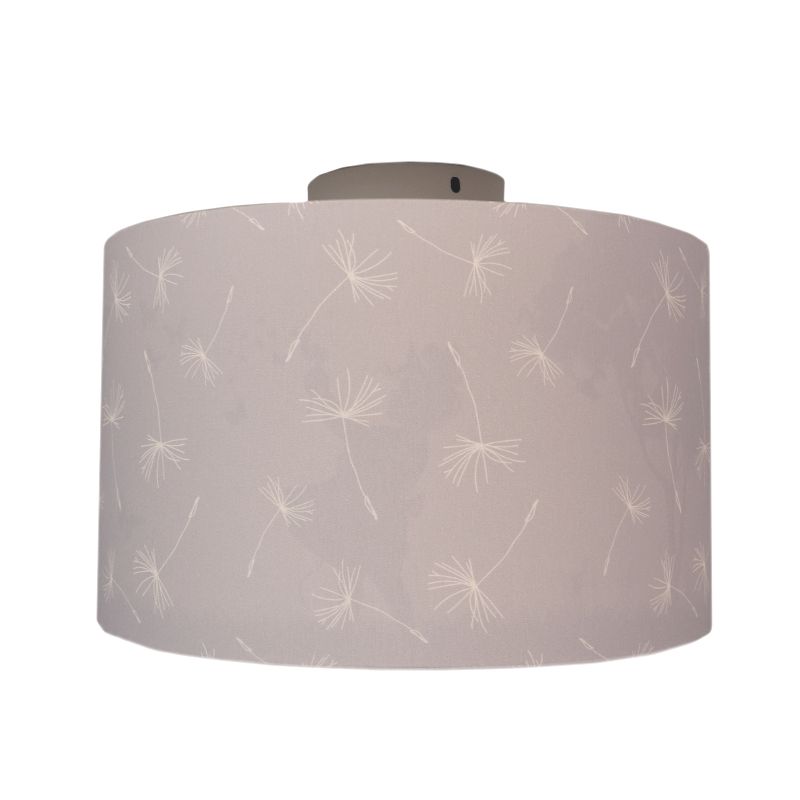 De stoffen plafondlamp Vlinders is grijs van kleur. De Vlinders plafondlamp bestaat uit stof en metalen afdekplaat.