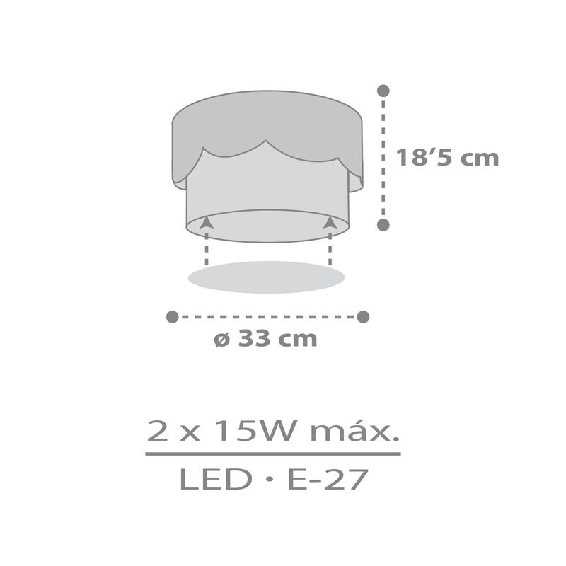 Product informatie Maximale wattage 25 Aansluitspanning 220-240V Aantal lampjes 2 Type fitting E27 Product informatie Incl. lampje Nee Breedte in cm 33 Diameter in cm 33 Gewicht in kg 0.865 Hoogte in cm 18.5 Dimbaar Ja (niet meegeleverd) Garantie 2 jaar IP waarde IP20 (stofdicht) Kleur Grijs Materiaal Kunststof Ruimte Babykamer, Kinderkamer Stijl Basis Artikelnummer Q33924 - Home