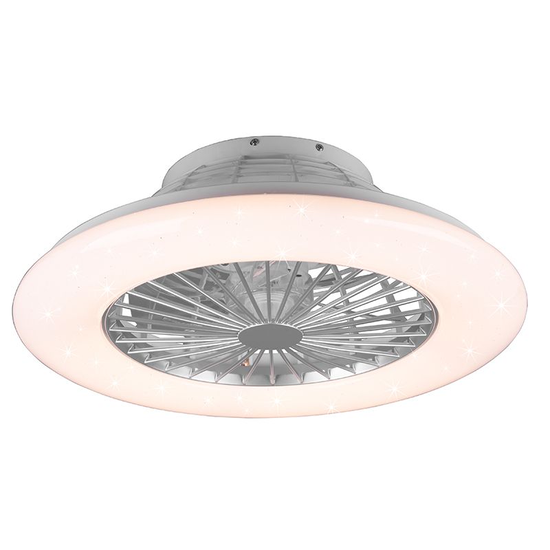 De grijze plafondventilator Damyan heeft de stijl modern en is gemaakt van kunststof. Deze moderne plafondventilator is voorzien van zuinig geïntegreerd LED licht. De geïntegreerde LED verlichting heeft een vermogen van 30 watt en de lichtkleur RGBW (alle kleuren + wit). Bij RGBW verlichting kan je kiezen uit alle vrijwel alle lichtkleuren en wittinten. Je bepaalt zo zelf met welke kleur je sfeer creëert in jouw kamer.