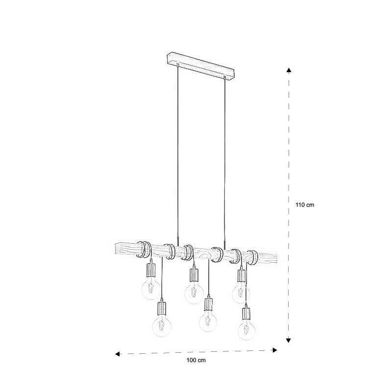 Product informatie Maximale wattage 60 Aansluitspanning 220-240V Aantal lampjes 6 Type fitting E27 Product informatie Incl. lampje Nee Breedte in cm 10 Breedte voet-/montageplaat in cm 4.5 Gewicht in kg 3.1 Hoogte in cm 110 Hoogte voet-/montageplaat 4.5 Lengte in cm 100 Lengte voet-/montageplaat 40 Dimbaar Ja (niet meegeleverd) Garantie 2 jaar IP waarde IP20 (stofdicht) Kleur Bruin, Zwart Materiaal Hout Ruimte Eettafel Stijl Landelijk Artikelnummer Q15299 - Home