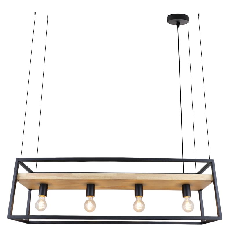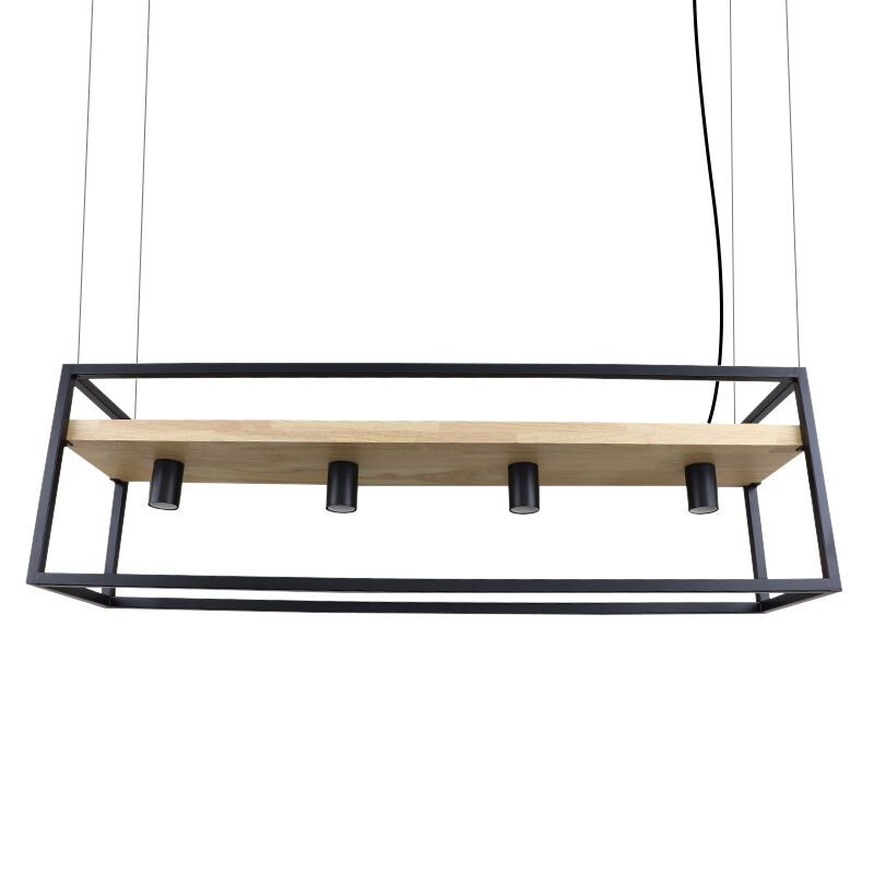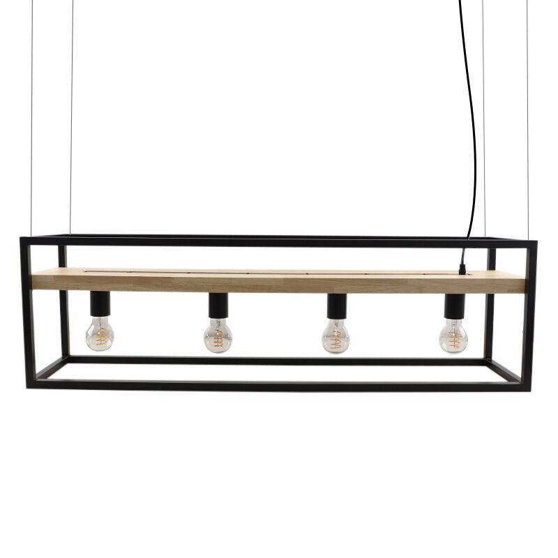 Product informatie Maximale wattage 40 Aansluitspanning 220-240V Aantal lampjes 4 Type fitting E27 Product informatie Incl. lampje Nee Breedte in cm 22 Hoogte in cm 130 Lengte in cm 100 Dimbaar Ja (niet meegeleverd) Garantie 2 jaar IP waarde IP20 (stofdicht) Kleur Bruin, Zwart Materiaal Hout, Aluminium Ruimte Eettafel Stijl Industrieel Artikelnummer Q51415 - Home