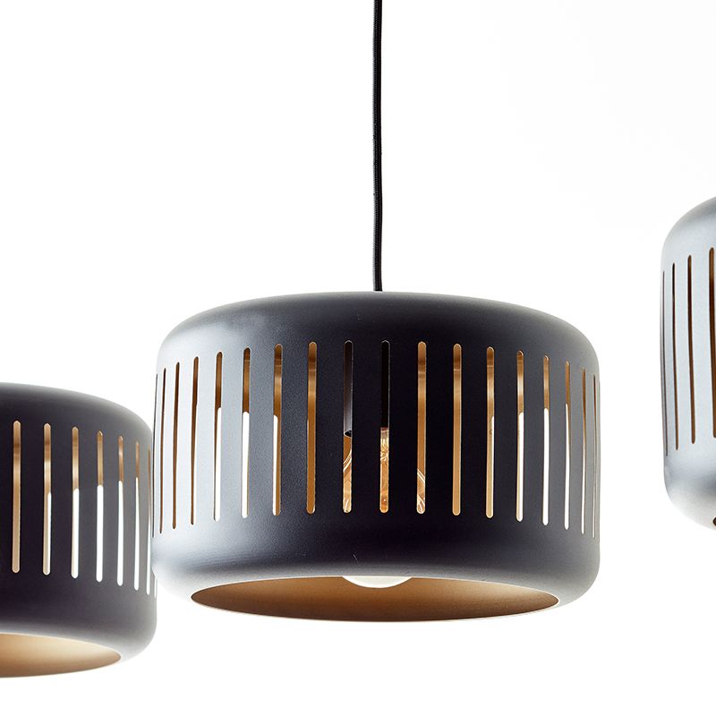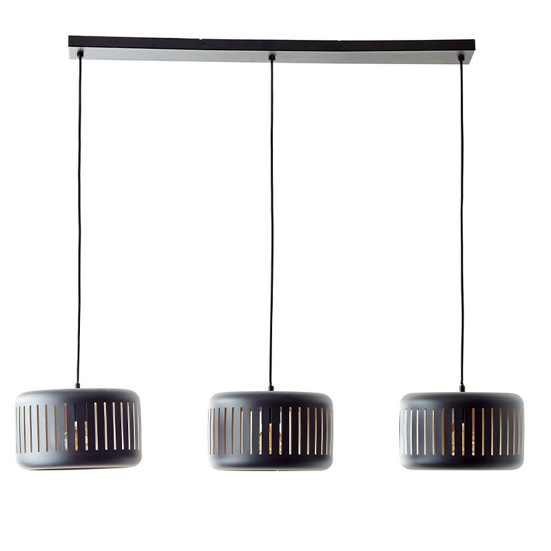 Zwarte Wiro hanglamp met 3 ronde, 20cm, kappen- B: 90 cm, H: 130 cm