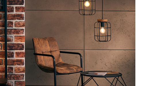 Bij Lampgigant draait het om karaktervolle materialen zoals metaal, beton en hout. Denk aan elegante hanglampen, strakke houten wandspots en leren lampenkappen. Het contrast tussen deze texturen en verfijnde zwarte accenten zorgt voor een industriële uitstraling met een chique twist.