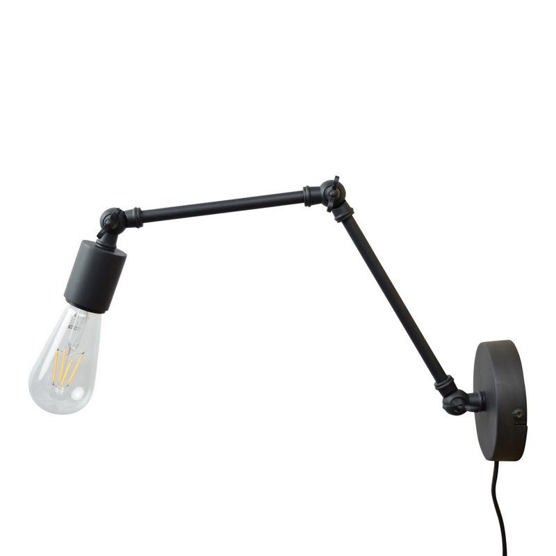 Stoere, knikbare wandlamp Orloni met een knikbare arm. De lamp is uitgevoerd in vintage zwart. De lamp is inclusief 190 cm lang snoer met stekker, inclusief aan-uit schakelaar. De IP waarde is 20 wat inhoudt dat de lamp geschikt is voor gebruik binnenshuis en niet geschikt is voor buiten of in de badkamer vanwege water en vocht dat in de lamp kan komen.