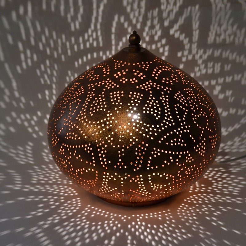 Product informatie Maximale wattage 40 Aansluitspanning 220-240V Aantal lampjes 1 Type fitting E27 Product informatie Incl. lampje Nee Breedte in cm 26 Diameter in cm 26 Hoogte in cm 30 Dimbaar Ja (niet meegeleverd) Garantie 2 jaar IP waarde IP20 (stofdicht) Kleur Koper Materiaal Filigrain Ruimte Woonkamer, Slaapkamer Stijl Oosters Artikelnummer Q20330