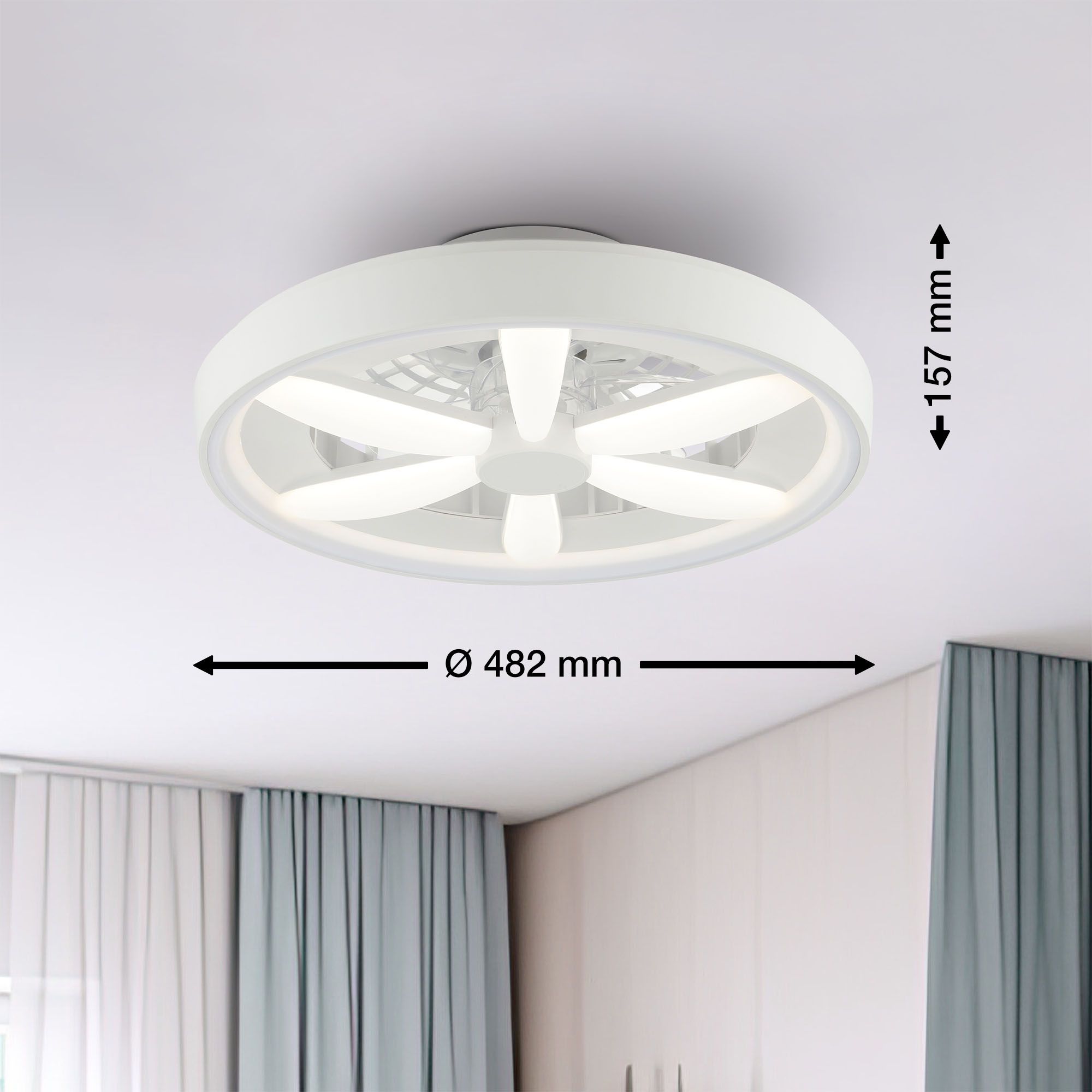 - Kunststof plafondventilator wit, Roos, 48W, RGBW LED, met afstandsbediening