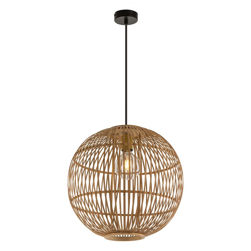79,9910-15 werkdagen Bruine landelijke hanglamp hout, Bergama- D: 50 cm, H: 150 cm
