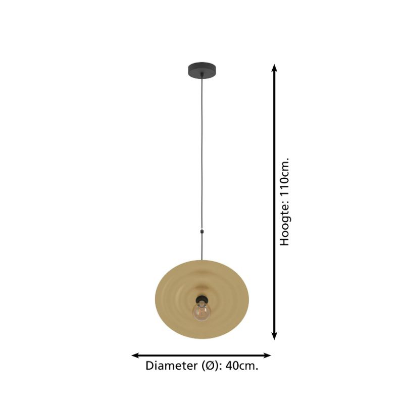 De messing design hanglamp Jesmer is gemaakt van staal. De messing hanglamp wordt geleverd exclusief geschikte lichtbron met E27 fitting. In het armatuur kunnen LED lichtbronnen met een maximaal vermogen van 40 watt.