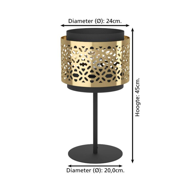 109,-4-8 werkdagen Zwarte retro tafellamp, Tjardo, staal- D: 23 cm, H: 48,5 cm