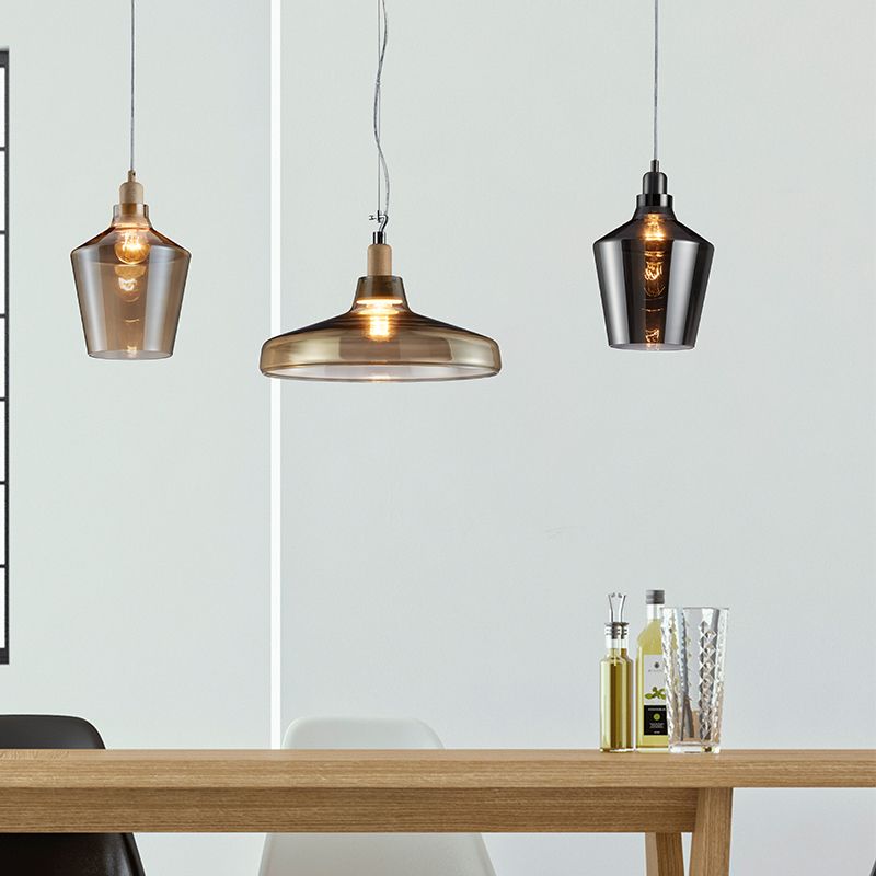- Mika hanglamp, glas - Rookglas, Zilver