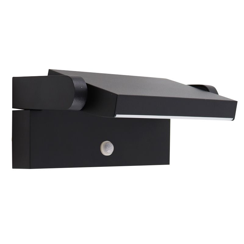 Moderne buiten wandlamp met bewegingssensor zwart, Alet, 12,5W, 3000K LED, IP54